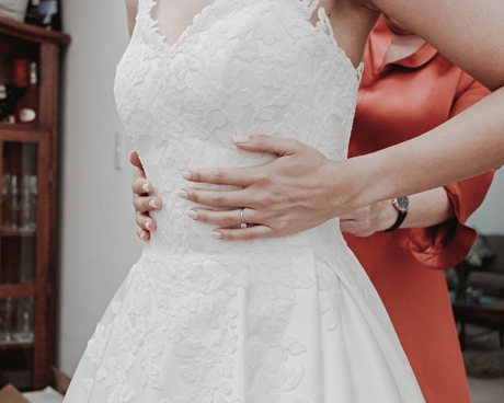 "Nunca me cansaré de decirlo trabajar con Tega fue la mejor decisión que pude tomar con respecto a mi vestido de novia. Toda mi vida soñé con un vestido así y ella supo plasmar la idea exacta en tela, superó cien por ciento mis expectativas"